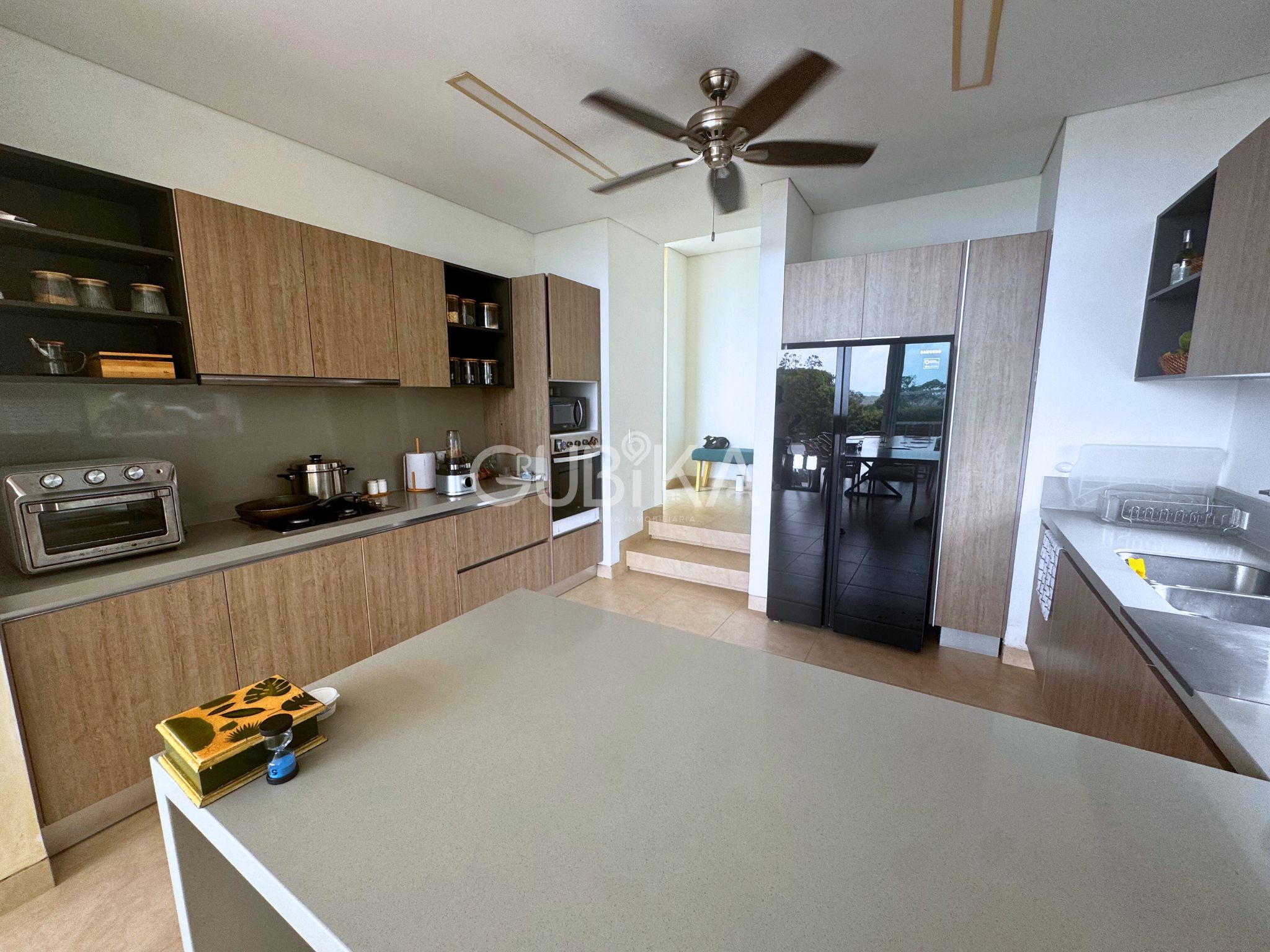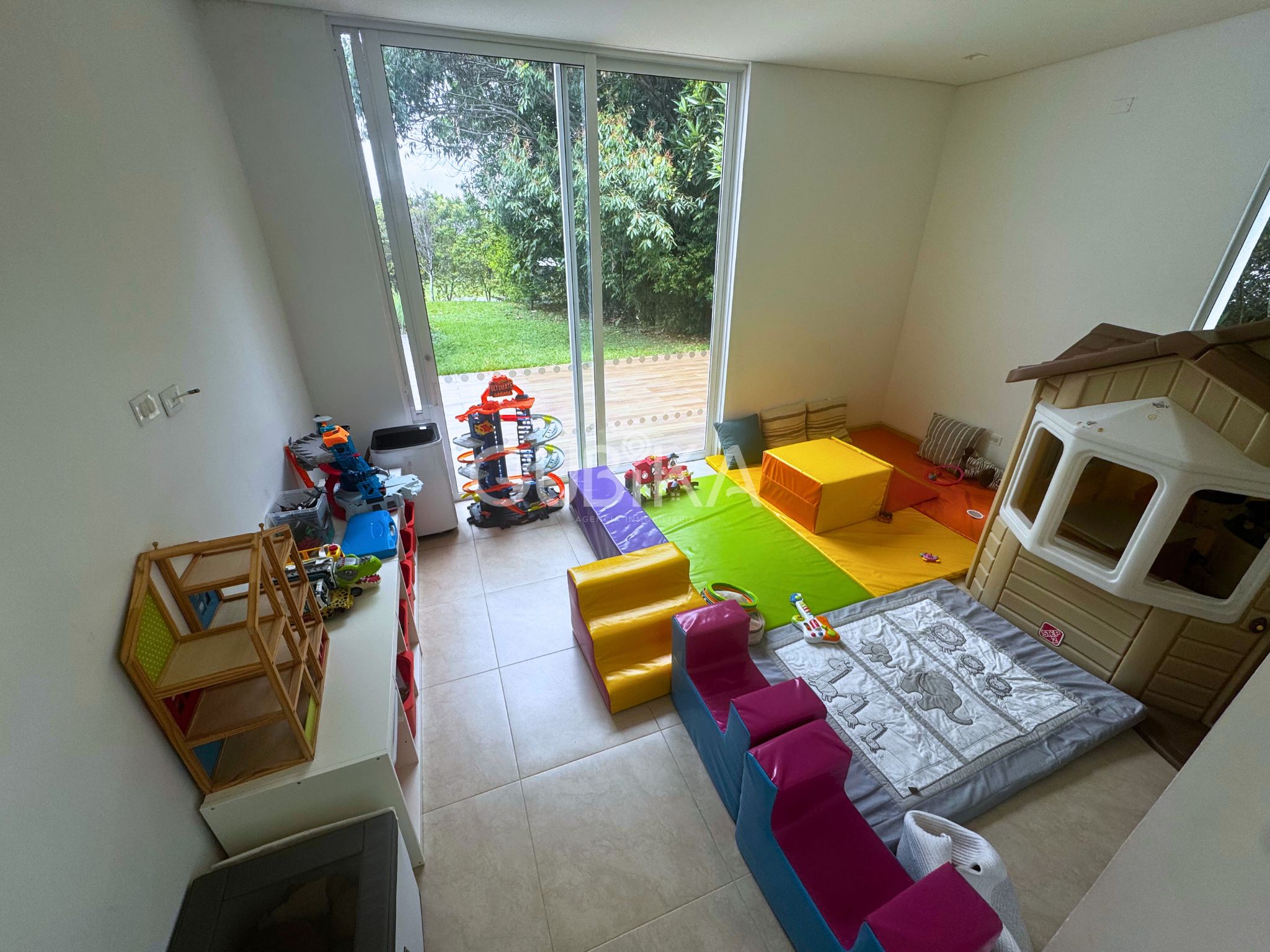 Construida sobre un lote de 6.000 m², la casa cuenta con 300 m² distribuidos en una planta abierta y funcional, con cocina integrada, tres habitaciones, cuatro baños, alcoba de servicio, terraza y generosos espacios sociales que conectan con el entorno. Cuenta con parqueadero para varios vehículos y una vista privilegiada a la montaña.